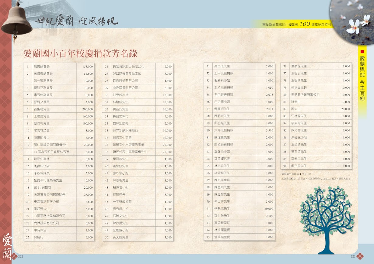 愛蘭國小百年校慶捐款芳名錄